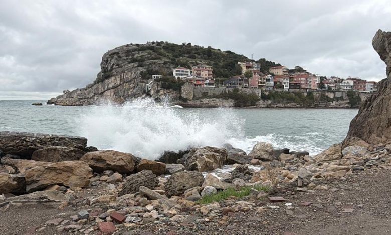 Bartın’ın Amasra ilçesinde, Meteoroloji Genel Müdürlüğü’nün uyarıları sonrasında etkisini gösteren fırtına, denizde dalga boyunu 3 metreye kadar çıkardı. Bu durum, yerel balıkçıları ve denizcileri olumsuz etkiledi. Amasra Büyük Liman’da dalgaların beton bloklara çarpması dikkat çekti.