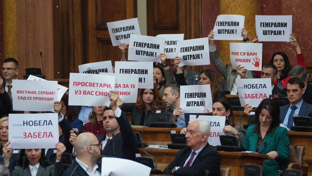 Parlamenterlerin üniversite eğitimi için finansmanı artıracak bir yasaya oy vermeleri planlandı, ancak muhalefet partileri oturumun yasadışı olduğunu iddia etti ve Başbakan Milos Vucec ve hükümetinin istifasının onaylanması gerektiği konusunda ısrar etti.